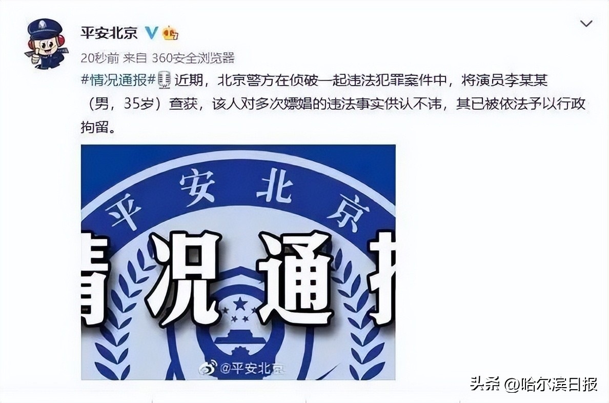 據(jù)此前報道,2022年,北京警方在偵破一起違法犯罪案件中,將演員李某某(男,35歲)查獲,該人對多次嫖娼的違法事實供認不諱,其已被依法予以行政拘留。