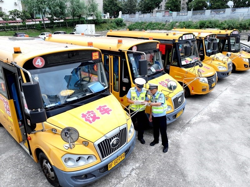 8月25日,江蘇省淮安市公安局洪澤分局交警大隊(duì)民警對(duì)校車進(jìn)行安全檢查。