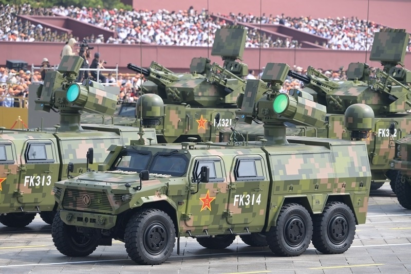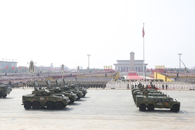 9月3日,紀念中國人民抗日戰(zhàn)爭暨世界反法西斯戰(zhàn)爭勝利80周年大會在北京隆重舉行。這是艦載防空武器方隊接受檢閱。