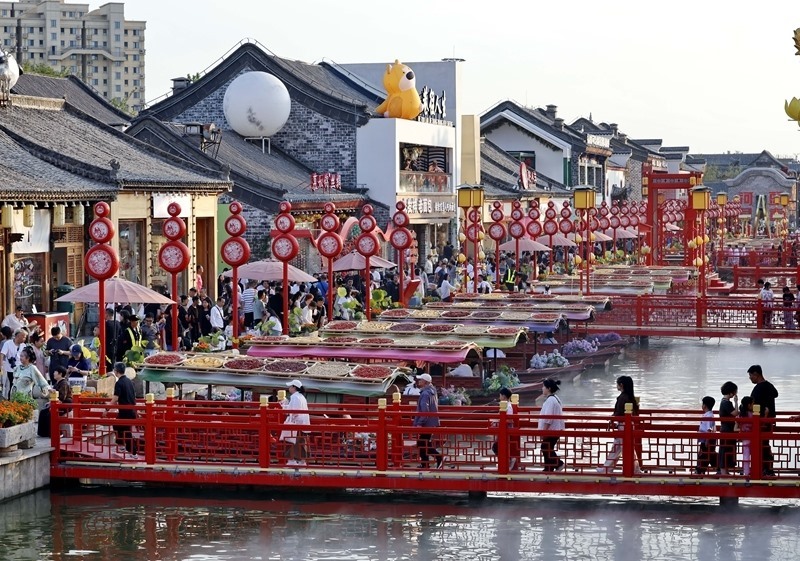 10月3日,游客在河北省唐山市豐南區(qū)河頭老街景區(qū)游玩。