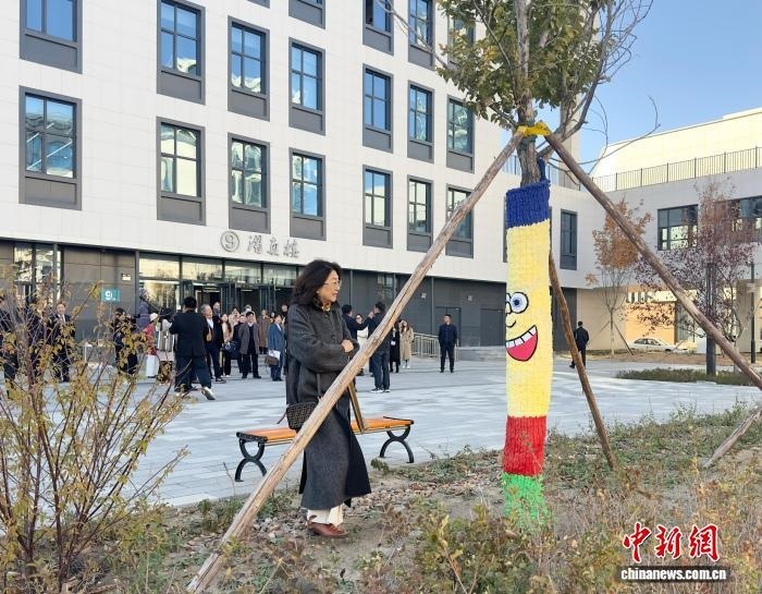 10月23日,吉林長春,大學生給樹穿上棉衣。 郭佳 攝