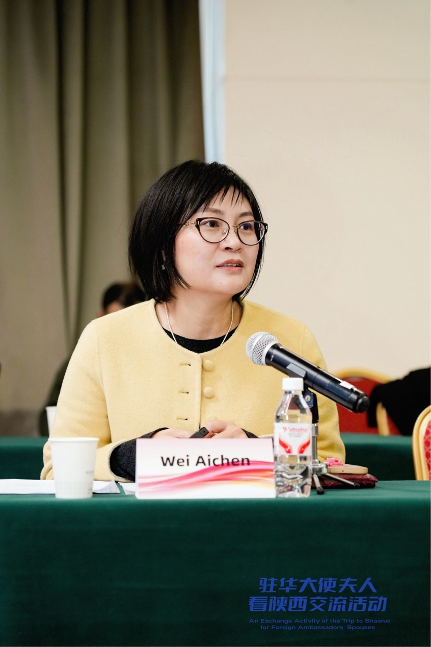 王玉娥的分享為駐華大使夫人打開了陜西婦女事業(yè)的“全景圖”,女性代表、西安宏源視訊設備有限責任公司CEO黃姍姍,“愛心媽媽”代表、西安市蓮湖區(qū)艾樂生社會工作服務中心主任韋艾辰的發(fā)言,則是這幅圖景中最鮮活的“特寫鏡頭”。