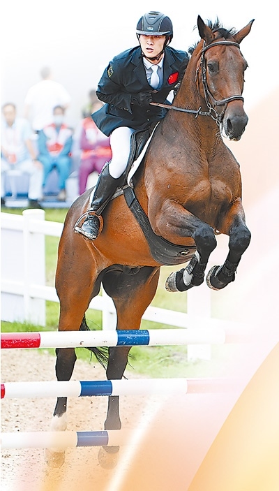 9月21日,湖北隊(duì)選手陳柏良在第十五屆全國運(yùn)動會現(xiàn)代五項(xiàng)馬術(shù)比賽中。