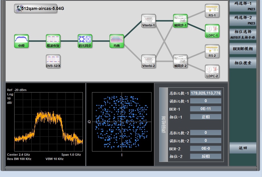 △X頻段雙通道實(shí)驗(yàn)星座圖及誤碼率情況