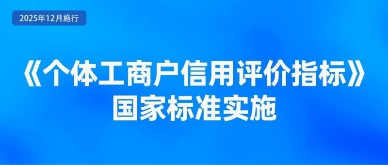 市場監(jiān)管總局組織制定發(fā)布《個體工商戶信用評價指標》(GB/T 46278—2025)國家標準,于12月1日正式實施。開展個體工商戶信用評價,旨在發(fā)揮信用價值,助力金融機構(gòu)開發(fā)和提供適合個體工商戶發(fā)展特點的金融產(chǎn)品和服務,擴大個體工商戶貸款規(guī)模和覆蓋面,提高貸款精準性和便利度。同時也將為實施分型分類精準幫扶,加大“個轉(zhuǎn)企”探索力度,鼓勵、支持、引導個體工商戶持續(xù)健康發(fā)展提供標準化支撐。