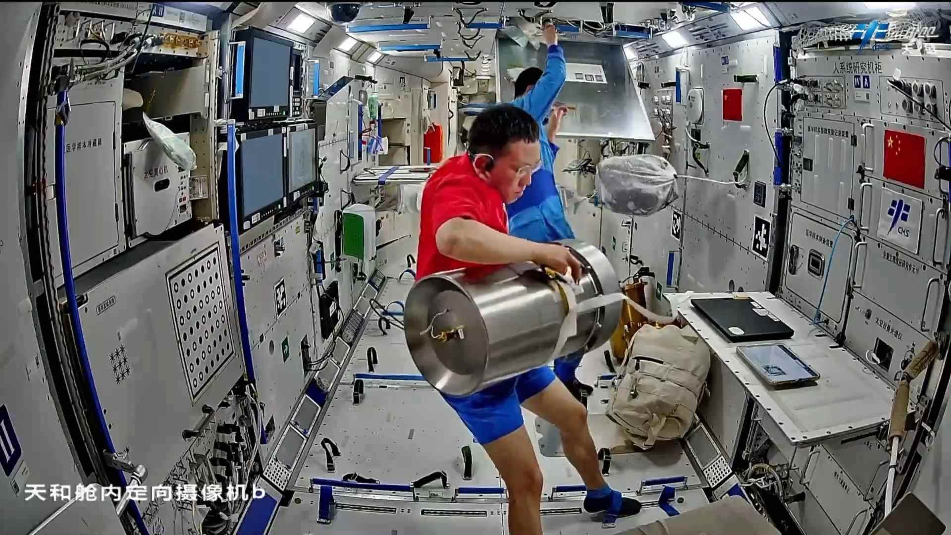 在設(shè)備檢查維護(hù)方面,乘組開展了低溫存儲裝置及-80℃空間冰箱巡視、環(huán)控氣瓶壓力檢查、再生生保系統(tǒng)設(shè)備維護(hù)等工作。