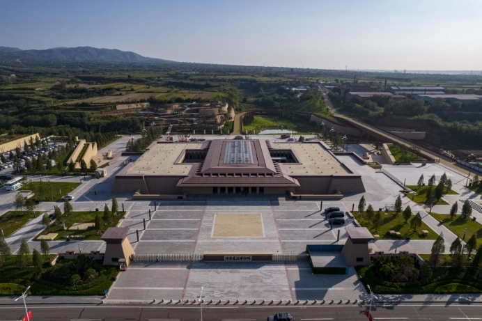 從空中俯瞰陶寺遺址博物館,外觀設計呈現(xiàn)一個“中”字。(資料圖)新華網(wǎng)發(fā)(王梓軒攝)