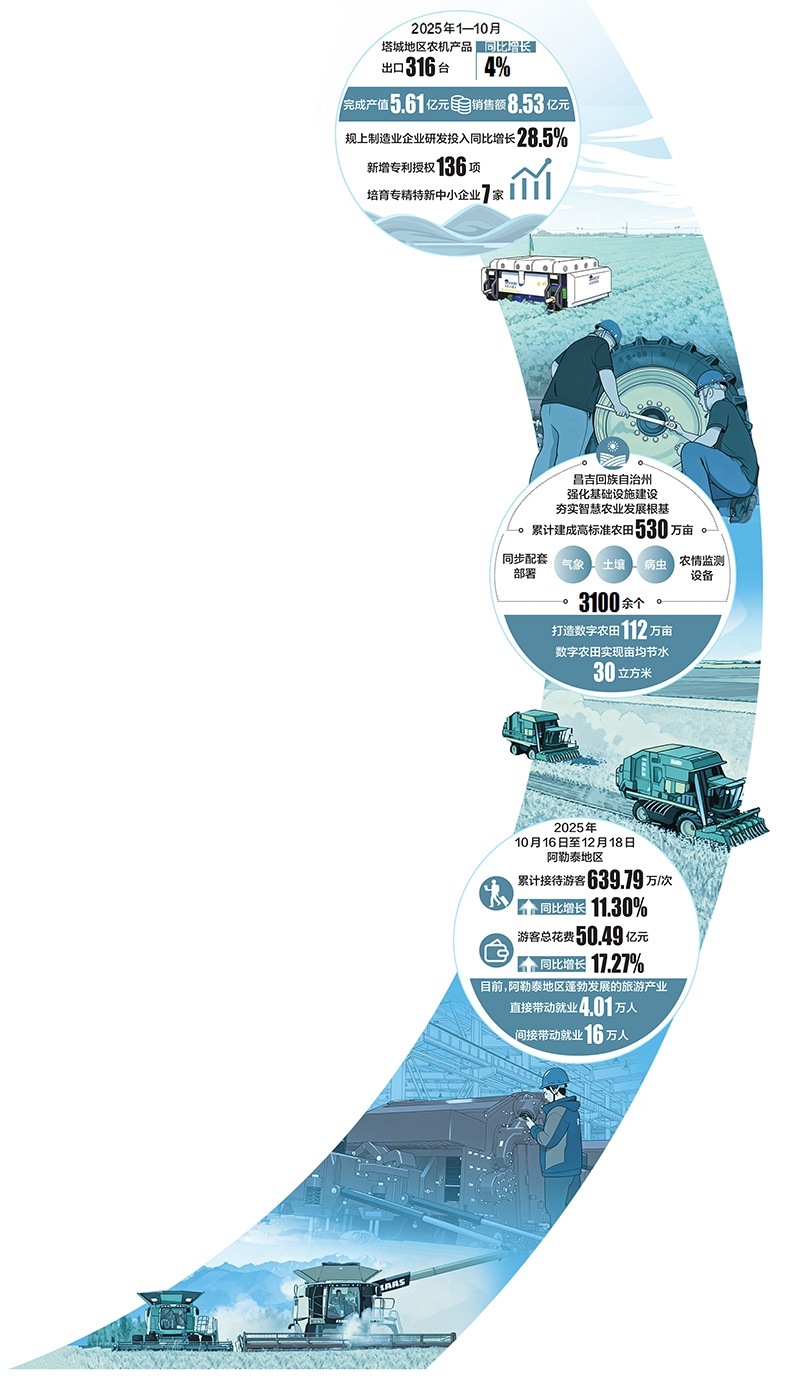 歲末之際,北疆大地處處涌動著蓬勃生機與創(chuàng)新活力。從智能農(nóng)機產(chǎn)銷兩旺到數(shù)字農(nóng)田“云端”管理,從冰雪熱潮點燃消費新引擎到物流樞紐貫通能源動脈,一幅以“新”為底色的發(fā)展畫卷正徐徐展開。本期北疆觀察版年終盤點,聚焦四組生動實踐,看新技術、新產(chǎn)業(yè)、新模式如何匯聚成新質生產(chǎn)力,為區(qū)域高質量發(fā)展注入強勁動能。