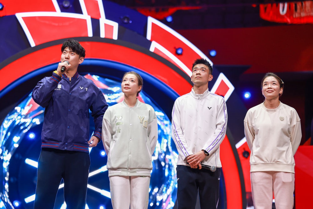 12月21日,劉雨辰、黃雅瓊、鄭思維、陳清晨(從左到右)在退役儀式上。新華社記者 江漢 攝