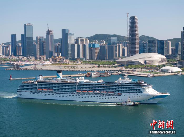 圖為郵輪駛過(guò)大連東港商務(wù)區(qū)。宮梁亮 攝