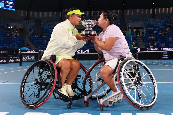 北京時(shí)間1月30日,2026澳網(wǎng)輪椅網(wǎng)球女雙決賽,頭號種子、中國組合王紫瑩/李曉輝以6-4、6-3擊敗2號種子朱珍珍/上地結(jié)衣,實(shí)現(xiàn)衛(wèi)冕。中國選手朱珍珍和搭檔上地結(jié)衣收獲亞軍。
