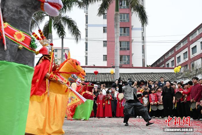(新春走基層)廣東潮州鄉(xiāng)村傳統(tǒng)民俗與機(jī)器人共舞
