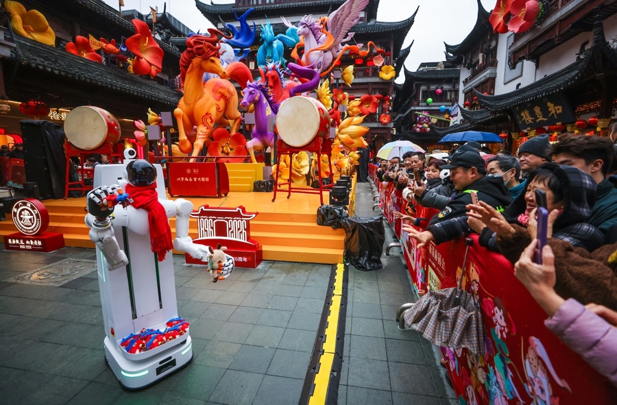 圖為由上海交通大學(xué)、上海人工智能研究院孵化的具身智能創(chuàng)業(yè)企業(yè),在豫園燈會中心廣場精心打造了一個未來感十足的智能互動區(qū)。文匯報記者袁婧攝