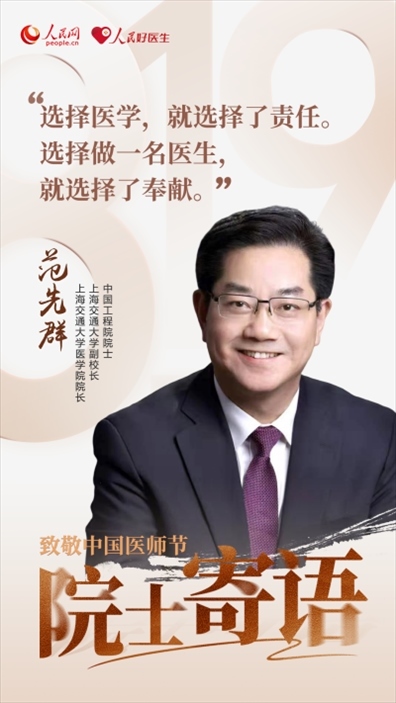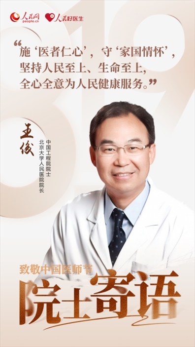 2023年8月19日是第六個(gè)中國(guó)醫(yī)師節(jié),今年醫(yī)師節(jié)的主題是“勇?lián)】凳姑?,鑄就時(shí)代新功”,大力弘揚(yáng)醫(yī)務(wù)工作者的崇高精神。值此之際,人民網(wǎng)、人民好醫(yī)生客戶(hù)端邀請(qǐng)中國(guó)工程院和中國(guó)科學(xué)院7位院士,為廣大醫(yī)務(wù)工作者們送上殷切的節(jié)日囑托。