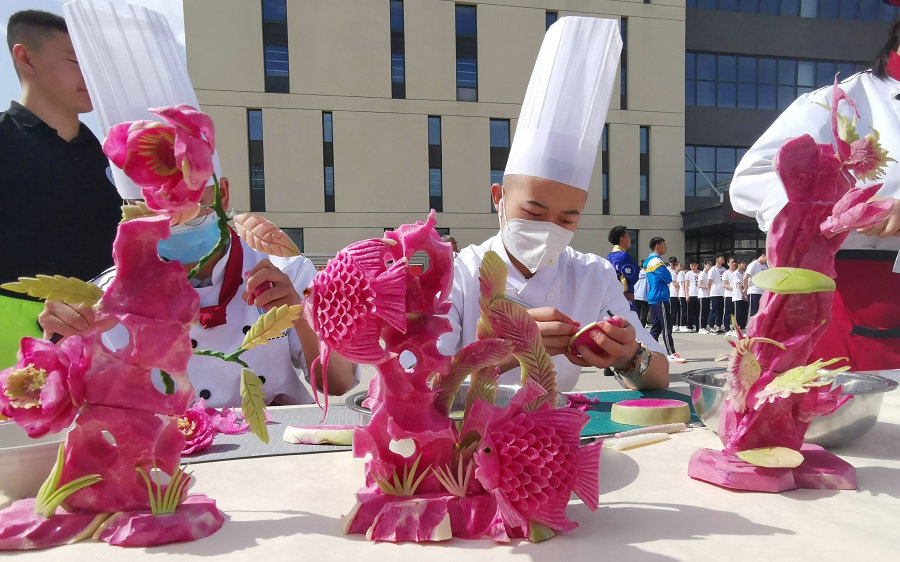 啟動儀式在學校舞獅隊的表演和烹飪專業(yè)學生的技能展示中拉開迎賓序幕,在雄壯的國歌聲中正式開啟了2021年呼和浩特市職業(yè)教育活動周。