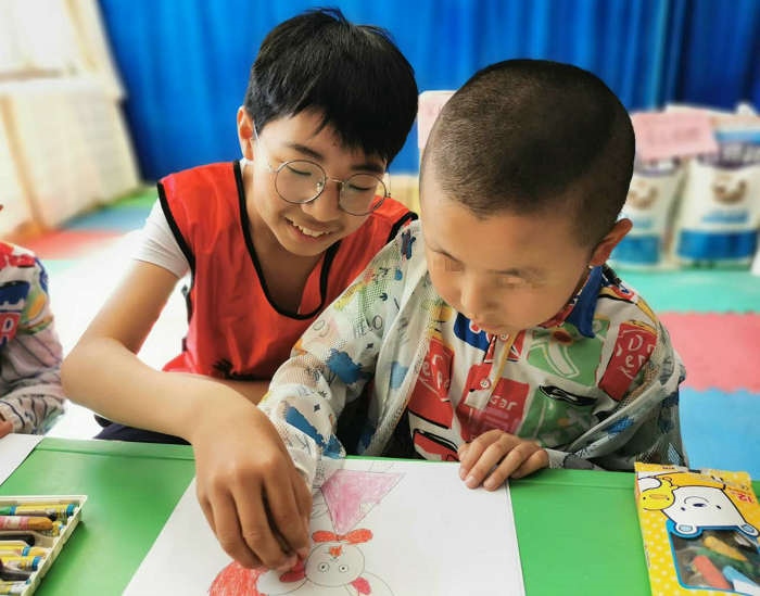 學(xué)員和家長與康復(fù)中心的孩子們一起描繪“兒童節(jié)”