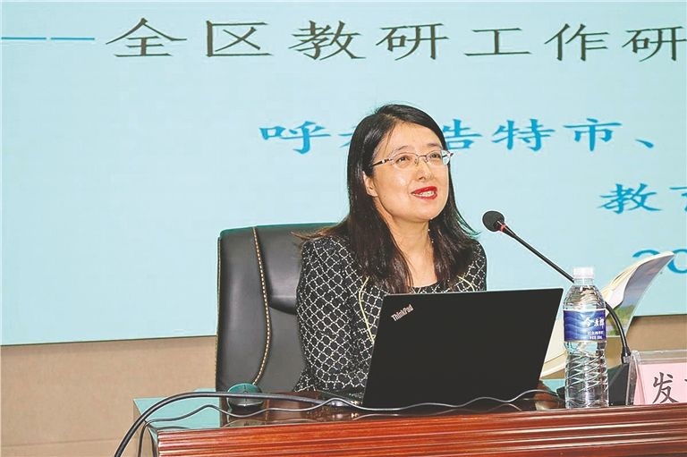 于秀娟在全區(qū)教研工作研討會(huì)上發(fā)言。(圖片由受訪者提供)