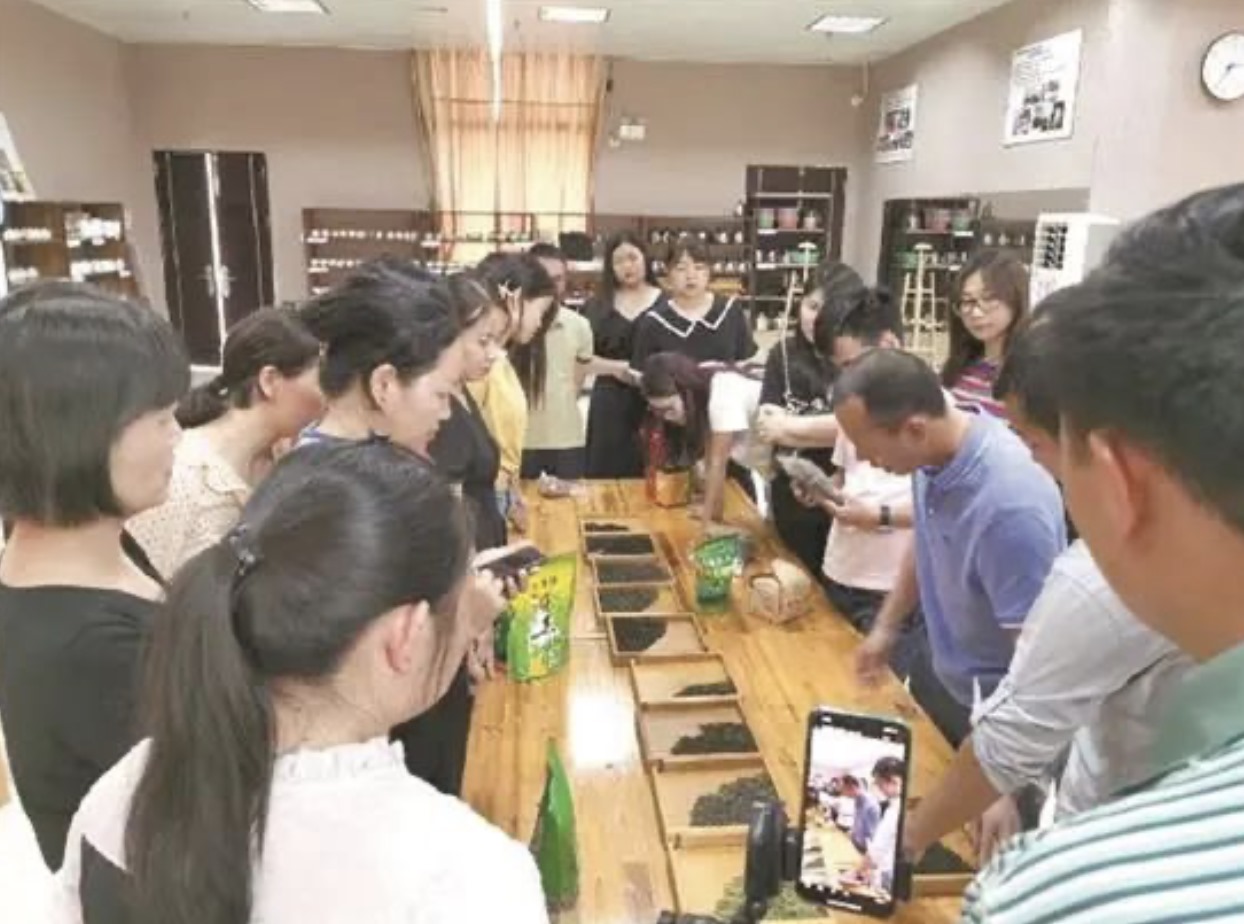 廣東科貿(mào)職院高職擴招茶藝班學(xué)生在學(xué)習(xí)識別茶葉