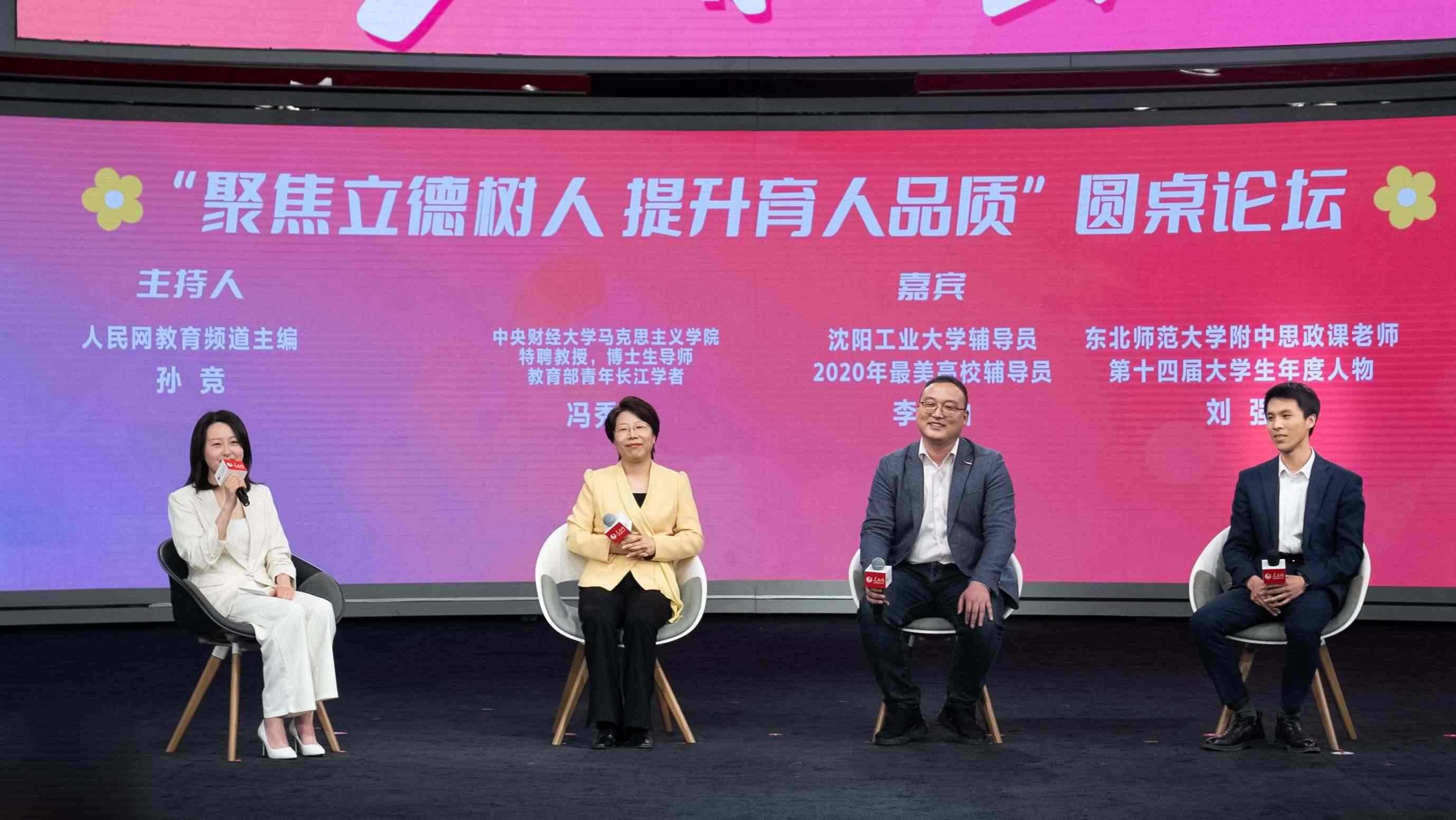 在“聚焦立德樹人,提升育人品質(zhì)”思政圓桌環(huán)節(jié)上,人民網(wǎng)教育頻道主編孫競與多位教育一線思政老師展開對話。中央財經(jīng)大學(xué)馬克思主義學(xué)院特聘教授、博士生導(dǎo)師、教育部青年長江學(xué)者馮秀軍表示,“一百多年前那個時代的青年,用青春和熱血為我們打造出了今天這樣一個中國青年可以平視世界的新天地。我們這片熱土,蘊含了無限的力量和希望,希望同學(xué)們投身實踐,尋找到我們的使命,從而獲得青春奮進的力量?!?/p>