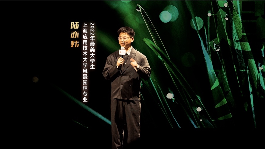 2022年最美大學(xué)生、上海應(yīng)用技術(shù)大學(xué)風景園林專業(yè)學(xué)生陸亦煒分享自己的故事。實習生韓華良 攝