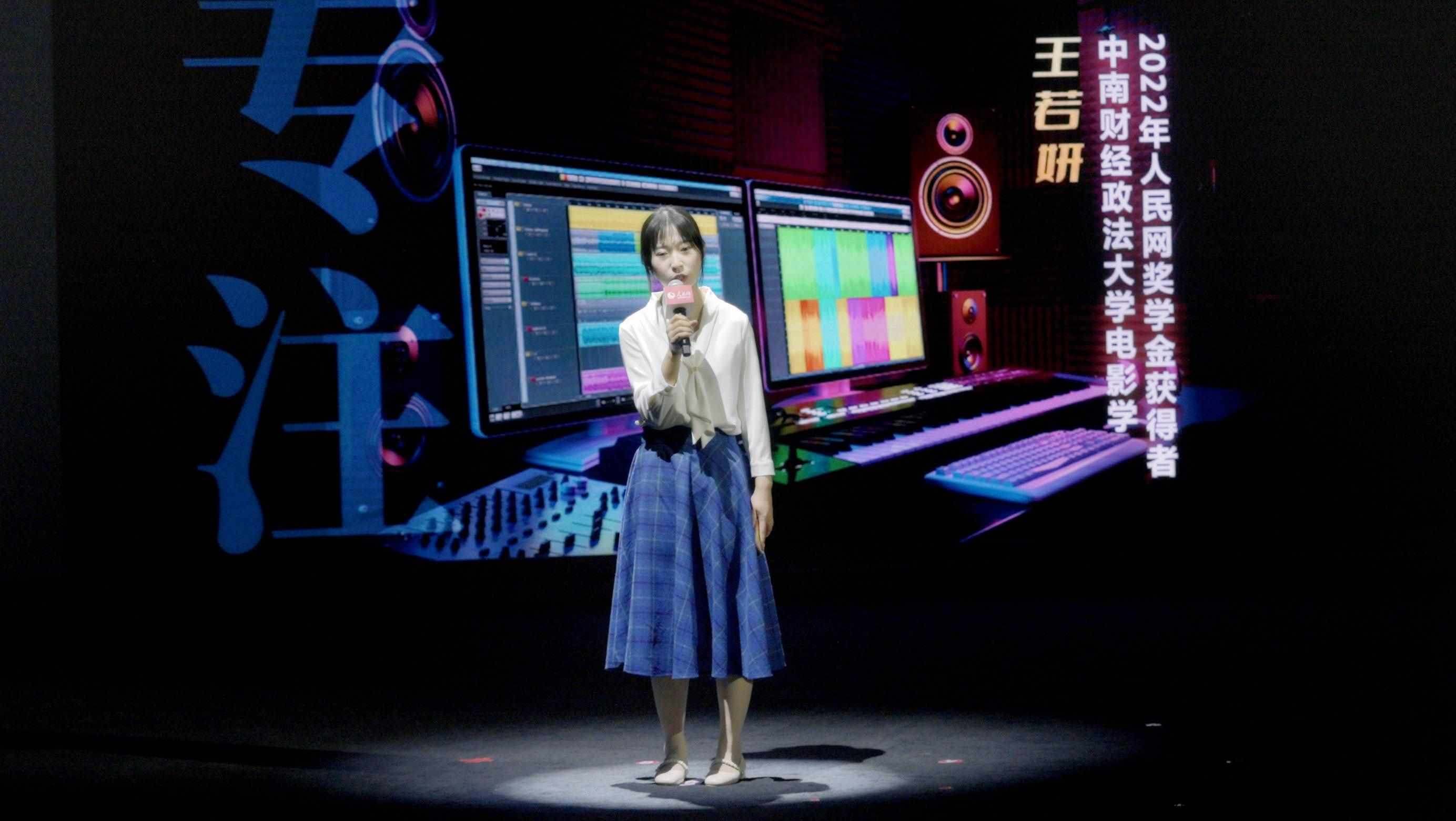 2022年人民網(wǎng)獎學(xué)金獲得者、中南財經(jīng)政法大學(xué)電影學(xué)專業(yè)學(xué)生王若妍分享自己的故事。實習生韓華良 攝