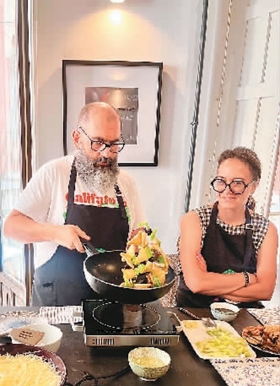米蓋爾選修的是中華廚藝課,不僅自己學習,還把太太拉來一起學做中國菜?!笆フQ晚宴全家聚會時,我們做了幾道中國菜,把全家人驚艷到了?!泵咨w爾說。