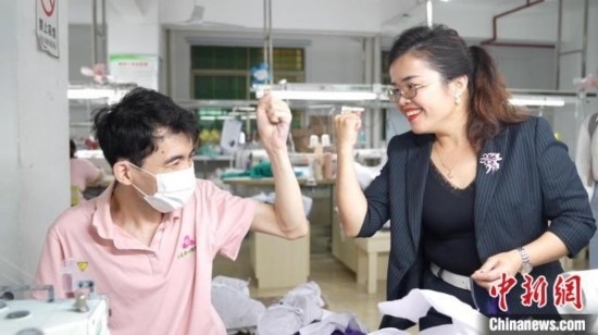 李王花說,解決殘疾人就業(yè)問題需要企業(yè)具有更多人文關(guān)懷。在制衣車間,有的員工邊工作邊聽音樂,溫情的企業(yè)氛圍讓許多殘障人士在這里找到了歸屬感和安全感。王康華自公司成立就在此工作,現(xiàn)在已是技術(shù)骨干。“殘疾人要有過硬的技術(shù)才能獲得工作的機會?!彼f,公司里殘疾人比較多,彼此之間互相幫助,大家還會一起做公益幫助他人,比起從前更加輕松快樂。