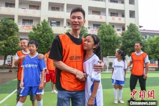 廖怡菱的爸爸廖鑫洲是當天上場比賽的隊員之一。他告訴記者,自己長期在廣東工作,平常只有逢年過節(jié)才會回家,陪在女兒身邊的時間很少?!斑@次我和其他幾位隊員的父親受‘追風計劃’主辦方邀請,特意從外地趕回尋烏和孩子們踢比賽,希望能夠陪她們度過一個特別的父親節(jié)。”