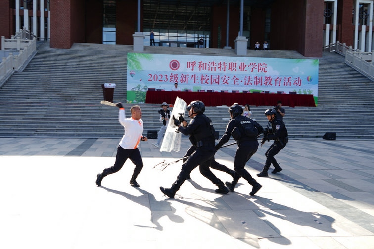 5500余名新生在軍訓(xùn)場(chǎng)上,英姿颯爽朝氣蓬勃,呼和浩特市公安局反恐怖和特巡警支隊(duì)教官團(tuán)隊(duì),通過現(xiàn)場(chǎng)授課及實(shí)操演練相結(jié)合的方式進(jìn)行了處突紅藍(lán)對(duì)抗演練(紅方為反恐怖和特巡警支隊(duì)民警,藍(lán)方為由反恐怖和特巡警支隊(duì)民警扮演的恐怖分子),指導(dǎo)學(xué)生在遇到危險(xiǎn)情況下如何應(yīng)對(duì)。進(jìn)一步增強(qiáng)大學(xué)生的安全防范意識(shí)和自我保護(hù)能力。