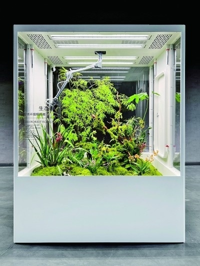 展廳一側(cè),三個(gè)立方體環(huán)境模擬艙并排放置,分別在近7立方米的空間內(nèi)模擬了雨林、海島、沙漠三種生態(tài)環(huán)境,引來(lái)許多觀眾圍觀?!霸诟邩橇至⒌亩际?,很多人都向往擁有一方屬于自己的自然天地。為人們?cè)谑覂?nèi)打造一片‘原始森林’便成了我們的使命?!逼放苿?chuàng)始人李軍介紹,設(shè)計(jì)過(guò)程中,團(tuán)隊(duì)遇到的一大的難點(diǎn)就是在保證室內(nèi)環(huán)境舒適度的同時(shí),讓各類(lèi)植物健康生長(zhǎng)。“通過(guò)設(shè)計(jì)師的努力,我們首次將人造太陽(yáng)光源、溫濕度控制、空氣流通、智能微噴等系統(tǒng)整合于室內(nèi)種植模擬環(huán)境中,實(shí)現(xiàn)了室內(nèi)種植智能化、自動(dòng)化、現(xiàn)代化?!崩钴姳硎?,做設(shè)計(jì)亦要遵循自然法則,“人與自然和諧共生”是團(tuán)隊(duì)始終不變的設(shè)計(jì)宗旨。