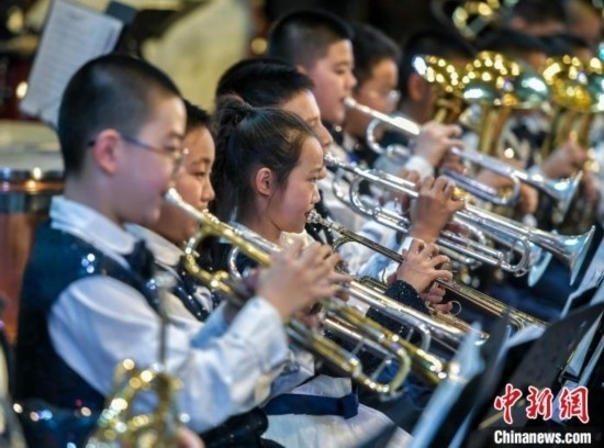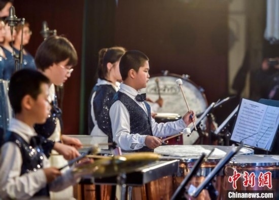 該交響管樂團成立于2014年,平均年齡10歲,是一支非常年輕有朝氣的隊伍。中新網記者 劉新 攝