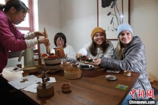 1月8日,來(lái)自美國(guó)加利福尼亞州州立大學(xué)長(zhǎng)灘分校的十余名學(xué)生來(lái)到山東青島,體驗(yàn)圍爐煮茶感受中國(guó)傳統(tǒng)文化。