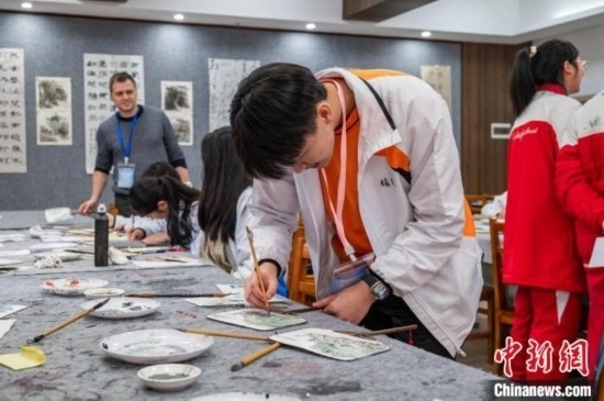 3月19日,香港學(xué)生學(xué)習(xí)國畫。唐哲 攝