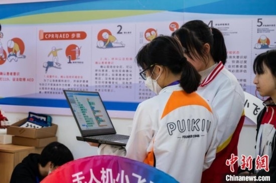 3月19日,兩地學(xué)生一起學(xué)習(xí)無人機(jī)巡線任務(wù)編程。唐哲 攝