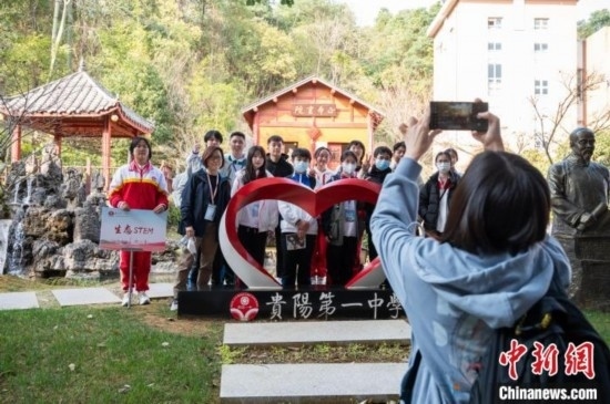 3月19日,部分兩地學(xué)生在貴陽市第一中學(xué)合影留念。唐哲 攝