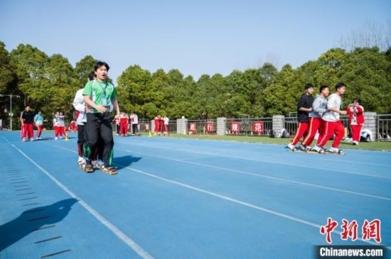 3月19日,兩地學(xué)生一起體驗(yàn)少數(shù)民族傳統(tǒng)體育項(xiàng)目《板鞋競技》。唐哲 攝
