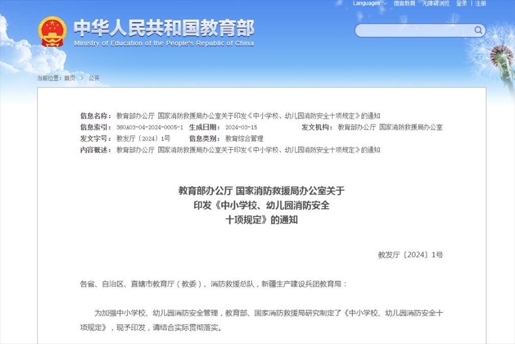 記者近日從教育部獲悉,為加強(qiáng)中小學(xué)校、幼兒園消防安全管理,教育部、國家消防救援局研究制定了《中小學(xué)校、幼兒園消防安全十項(xiàng)規(guī)定》。規(guī)定明確,中小學(xué)校、幼兒園應(yīng)定期開展教職工、安保人員消防安全培訓(xùn)。