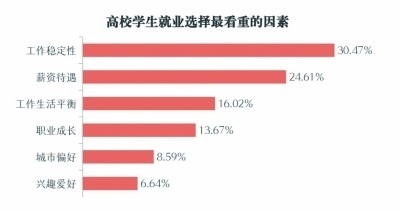 對我國東、中、西部地區(qū)7個省區(qū)市的14所本科院校、4所專科院校,覆蓋研究生、本科生、專科生三類群體,隨機抽樣的1829份調查問卷顯示,除工作穩(wěn)定性、薪資待遇外,工作生活平衡、職業(yè)成長、所在城市、興趣愛好等,也是高校學生就業(yè)選擇時看重的因素。