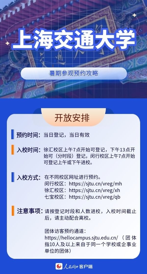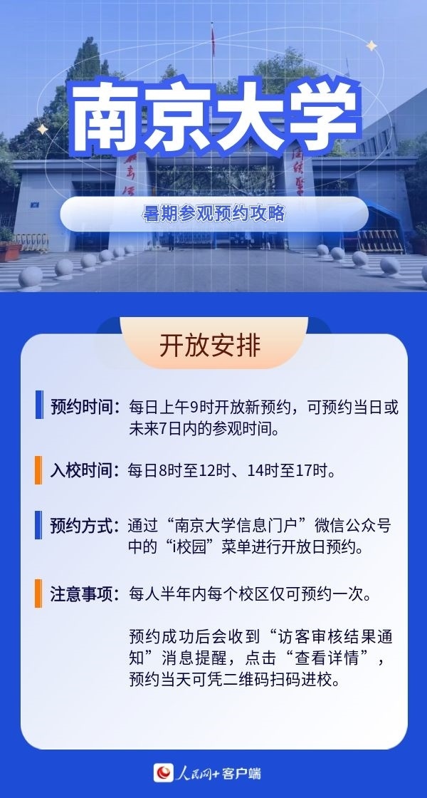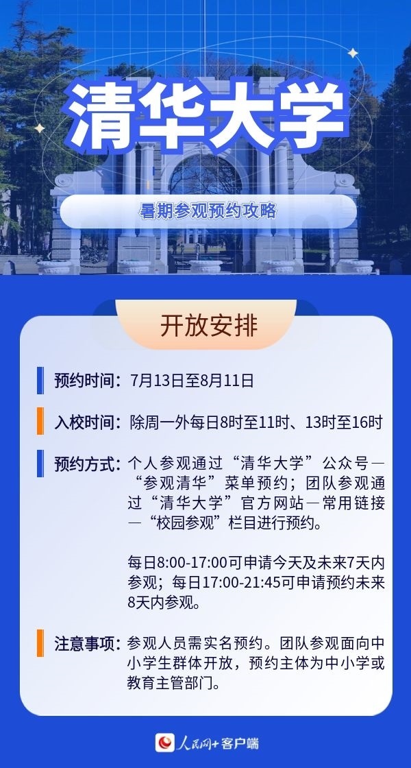 人民網(wǎng)北京7月19日電 暑假來臨,帶孩子參觀高校,感受學校人文歷史底蘊以及濃厚的學術(shù)氛圍,已經(jīng)成為很多家長的選擇。近日,全國多所高校開放校園,接受公眾參觀。那么如何預約進校?有什么注意事項?人民網(wǎng)特別整理了部分高校的參觀預約攻略,一起來看。(郝孟佳、實習生趙雪祺)