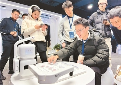在位于北京亦莊的兩岸科創(chuàng)中心,張朝宣與一款名為“元蘿卜”的象棋機(jī)器人對(duì)弈,引得眾人圍觀。他說(shuō):“這是我第一次和AI下棋,很有趣。我每下一步,它都可以推算出它的勝率是多少,從而讓我及時(shí)知道哪步好或不好,能幫助我提高棋藝?!?/p>