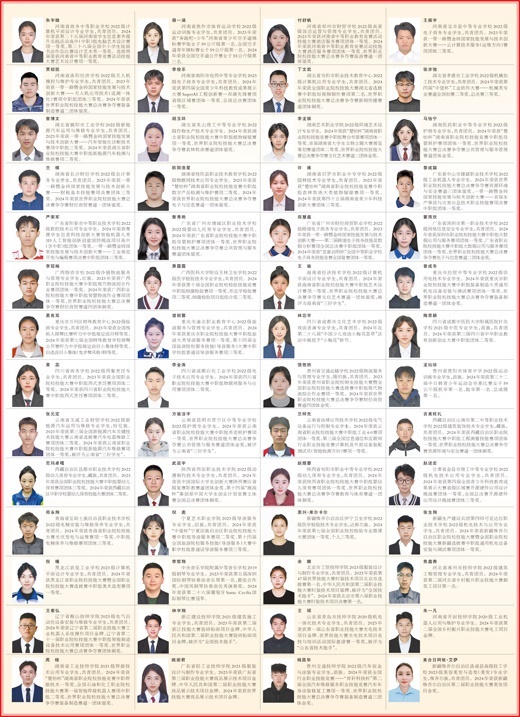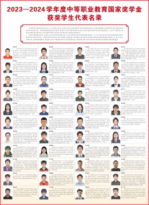 經(jīng)過嚴(yán)格選拔和評(píng)審,全國約2萬名中職學(xué)生榮獲2023—2024學(xué)年度中等職業(yè)教育國家獎(jiǎng)學(xué)金。以下100名學(xué)生是中等職業(yè)教育國家獎(jiǎng)學(xué)金獲獎(jiǎng)學(xué)生中的優(yōu)秀代表。希望全國中職學(xué)生以他們?yōu)榘駱樱笇W(xué)技能、學(xué)好技能,努力將自己鍛造成為新時(shí)代的高素質(zhì)技術(shù)技能人才、能工巧匠、大國工匠,在推進(jìn)強(qiáng)國建設(shè)、民族復(fù)興偉業(yè)中展現(xiàn)青春作為、彰顯青春風(fēng)采、貢獻(xiàn)青春力量,奮力書寫為中國式現(xiàn)代化挺膺擔(dān)當(dāng)?shù)那啻浩隆?/p>