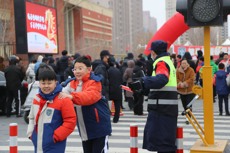 當(dāng)日清晨7時許,校園門前已秩序井然。在赤峰市公安交管部門統(tǒng)一指揮調(diào)度下,專業(yè)護學(xué)安保力量提前到崗,在校園出入口、人行橫道及車流集中路段開展值守。執(zhí)勤人員與交警密切配合,規(guī)范開展交通疏導(dǎo),引導(dǎo)接送車輛即停即走,及時勸導(dǎo)交通違法行為,護送學(xué)生安全通過道路,有效維護上下學(xué)高峰時段交通秩序,成為校園周邊一道亮眼的“平安風(fēng)景線”。