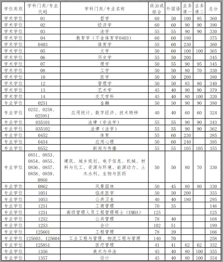 (4)“退役大學生士兵專項碩士研究生招生計劃”:按照所報考院系(專業(yè)/研究方向)的復試分數(shù)線,總分線降10分,單科線不降。