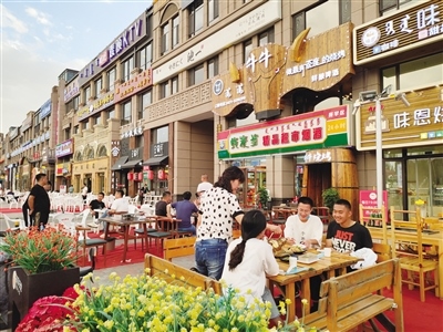 與大召濃厚的本土文化特色相比,惱包村是另外一種具有江南風(fēng)格的消遣之地,人們流連于它的小橋流水,在這里不僅大人們可以消遣,孩子們也有游玩的地方。旋轉(zhuǎn)木馬、跳跳床等,給孩子們增添了更多的歡樂。而在萬達花樣年華步行街,因為開放夜市,沿街商戶的營業(yè)時間延長到了晚上22時,這對于經(jīng)營水果、蔬菜生意的店老板閆先生來說無疑是好消息。“夜市才開了幾天,我們家的營業(yè)額就大幅度提升了,比之前要多出來1000塊錢,因為周邊就是居民小區(qū),大家出來閑逛,看到蔬菜、水果自然而然的就會挑選,我們的生意也就好做了?!遍Z先生說。