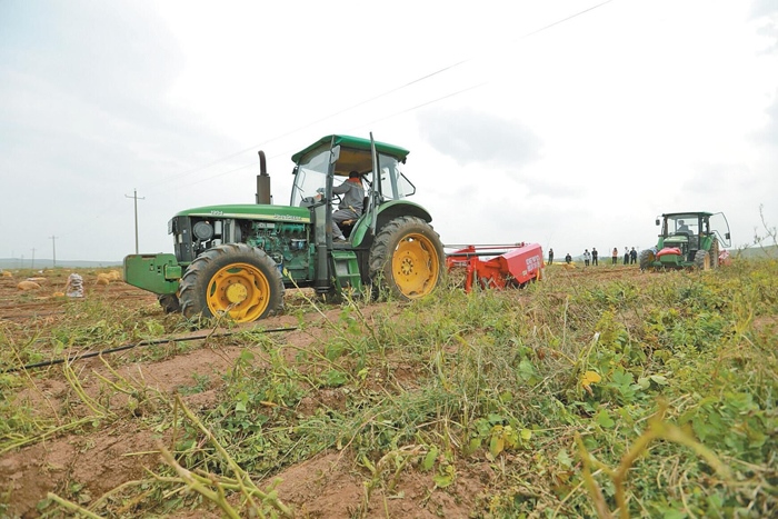近日,在烏蘭察布市察右后旗白音察干鎮(zhèn)建設(shè)村馬鈴薯種植基地,見(jiàn)到該村連營(yíng)農(nóng)業(yè)機(jī)械合作社負(fù)責(zé)人郝軍時(shí),他正忙得不亦樂(lè)乎。據(jù)了解,今年馬鈴薯銷售價(jià)格可觀,他們的合作社迎來(lái)了又一個(gè)豐收年。