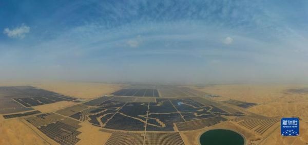 一匹占地130多萬(wàn)平方米的沙漠“駿馬”橫臥在內(nèi)蒙古自治區(qū)庫(kù)布其沙漠之中,這是位于達(dá)拉特光伏發(fā)電應(yīng)用領(lǐng)跑基地中、由近20萬(wàn)塊光伏板組成的“駿馬電站”。該電站采用“林光互補(bǔ)”模式,板上發(fā)電、板下種植,在開(kāi)發(fā)利用庫(kù)布其沙漠豐富太陽(yáng)能資源的同時(shí),推動(dòng)沙漠生態(tài)治理。
