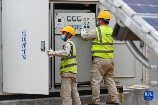 4月20日,工作人員在達(dá)拉特光伏發(fā)電應(yīng)用領(lǐng)跑基地巡檢。新華社記者 王澤聰 攝