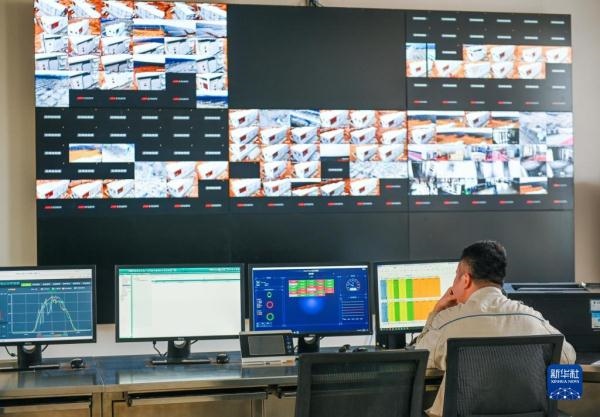 4月20日,在達(dá)拉特光伏發(fā)電應(yīng)用領(lǐng)跑基地,工作人員在運(yùn)維中心主控室工作。新華社記者 王澤聰 攝