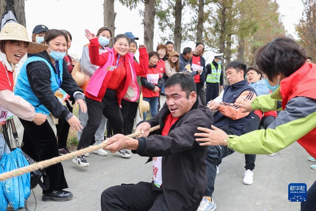 11月15日,在德清縣舉辦的美好家園運(yùn)動(dòng)會(huì)暨新安鎮(zhèn)稻田爭(zhēng)霸賽上,村民參加拔河比賽。新華社發(fā)(姚海翔 攝)