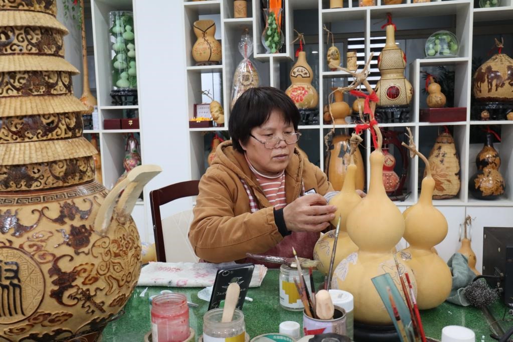 記者在一處加工點(diǎn)看到,今年41歲的村民李三紅正在趕制一批刻有“吉祥如意”字眼的葫蘆。李三紅10多年前從零開始學(xué)習(xí)烙刻葫蘆,現(xiàn)已成為技術(shù)骨干?!白鲆粋€(gè)葫蘆能掙六七十塊錢,抓緊點(diǎn)一天能做三個(gè)?!崩钊t說。